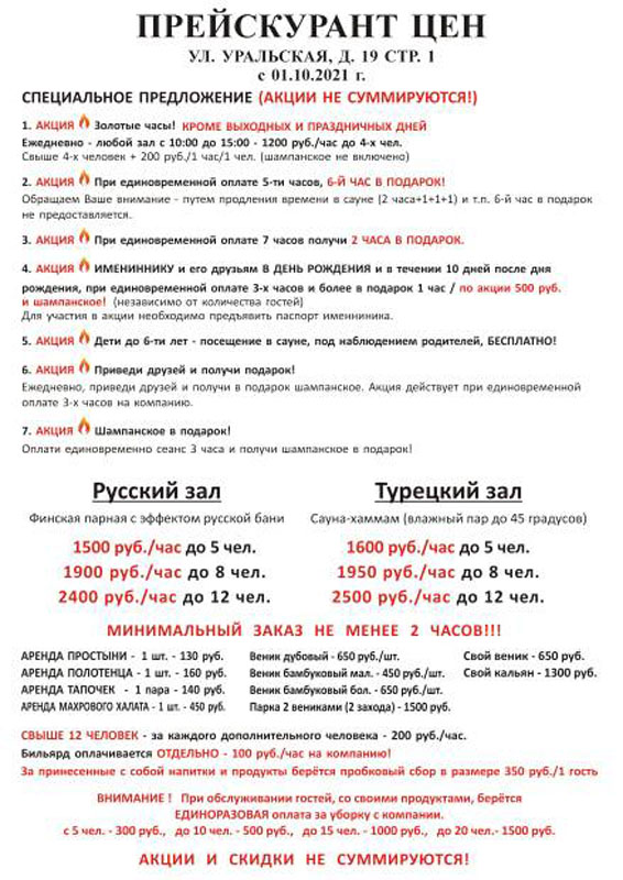 Сауна очень понравилась. Парилка супер! Веники просто огонь! Спасибо Вам за отдых. Всем рекомендую отдых в сауне на уральской 19.
