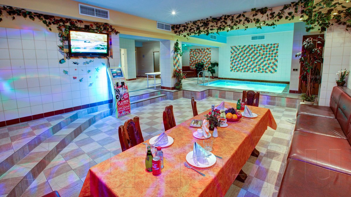 Очень хорошая сауна чистота везде, бассейн кресталически чистый, очень много мест были с друзьями есть бильярд, всякие игры а кухня на высоте всё с ножа свежие, персонал отзывчивый постоянно улыбаются просто приятно отдыхать,,,
