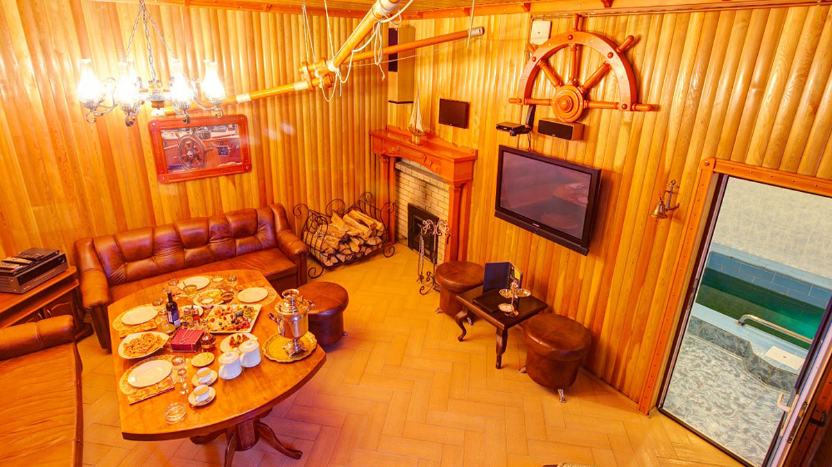 Были в номере \"Пиратский\" 20.08, отмечали ДР и нас было человек 16, уютно, не тесно, заказали бочку, туда положили 4 пихтовых веника и бочка превратилась в отличный чилаут :)\r\nЗаказали услуга приготовления шашлыка, шеф пережарил за полтора часа 8 кг мяса, и сделал это великолепно, не пересушил.\r\nВ общем, нам очень понравилось и советуем всем к посещению!